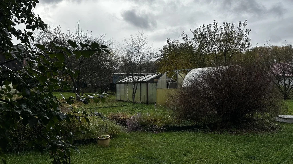 Участок 7,5 сотки, обрабатывается, различные растения, деревья, есть парник, хоз. блок.